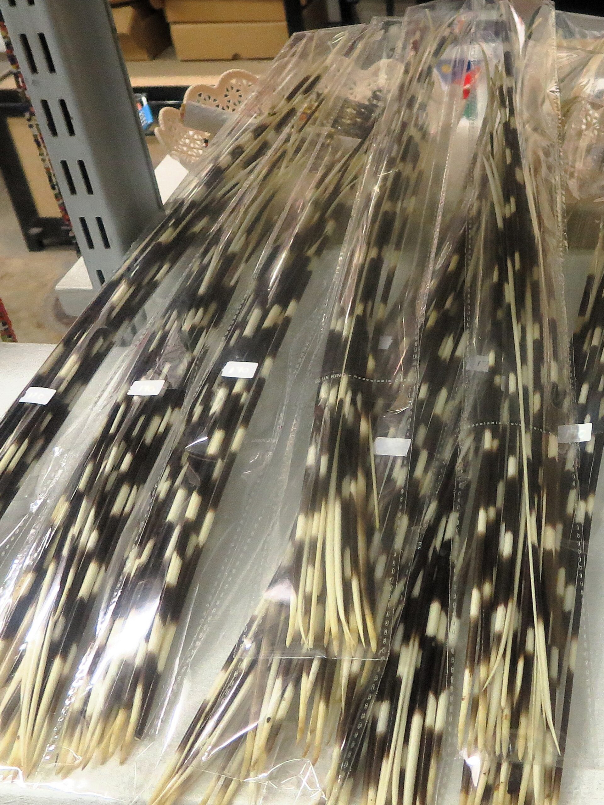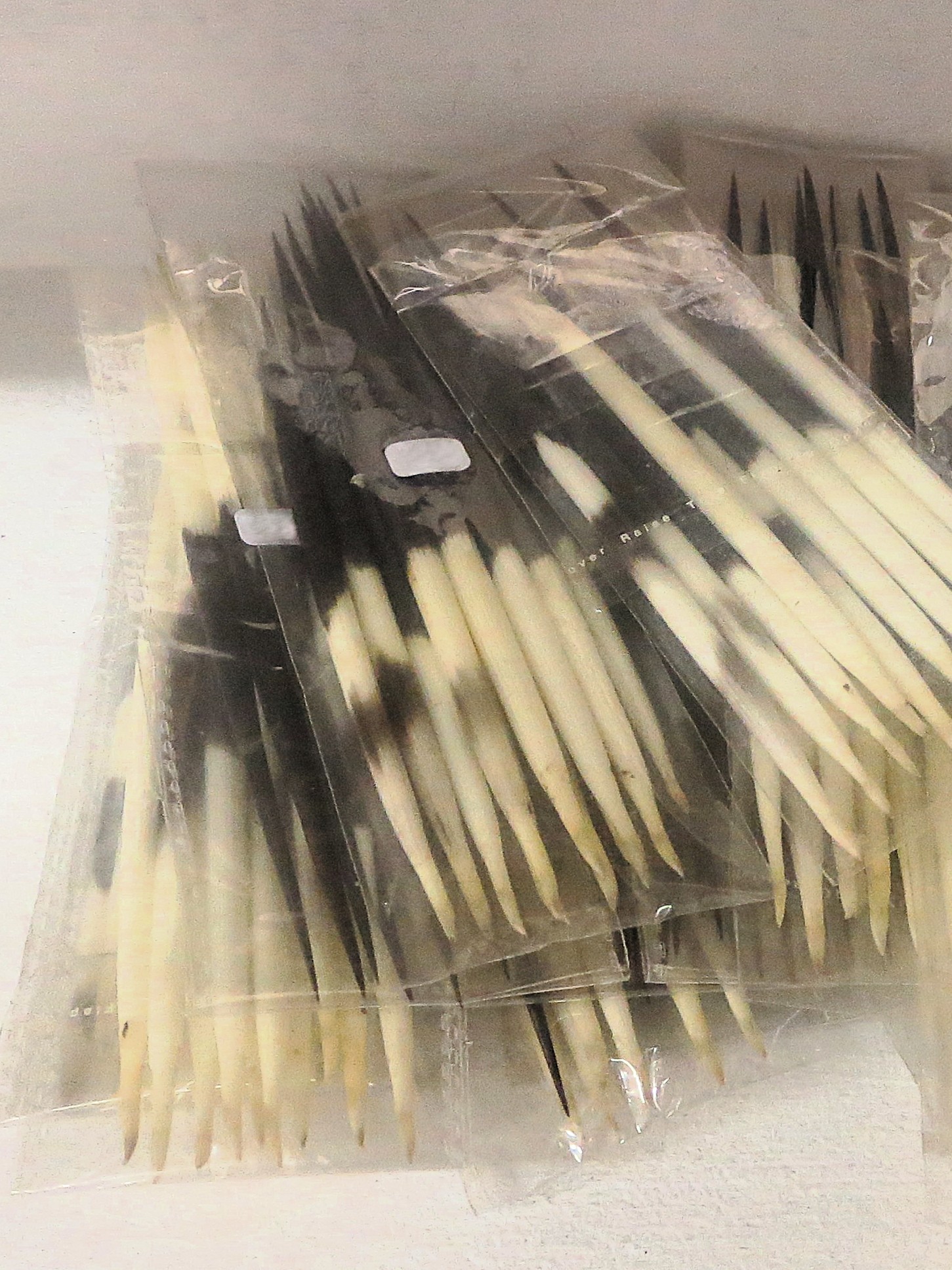 Natural porcupine quills sourced for crafting, decorative displays, or simply for those who enjoy collecting unique trinkets.
